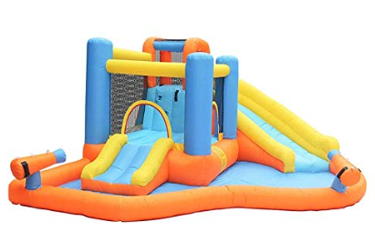 아이들이 뛰고 미끄러지고 구르며 놀 수 있는 에어쿠션 놀이기구예요💨