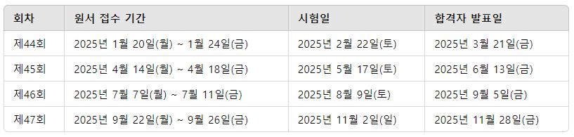 2025년에는 총 4회 시험이 예정되어 있어요.