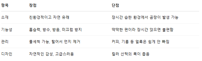 이 섬유는 내구성이 좋고, 습기 흡수 능력도 뛰어나서 다양한 용도로 쓰이고 있는데요, 특히 논슬립 기능이 뛰어나고 방수까지 가능하다는 점에서 인기를 끌고 있어요.